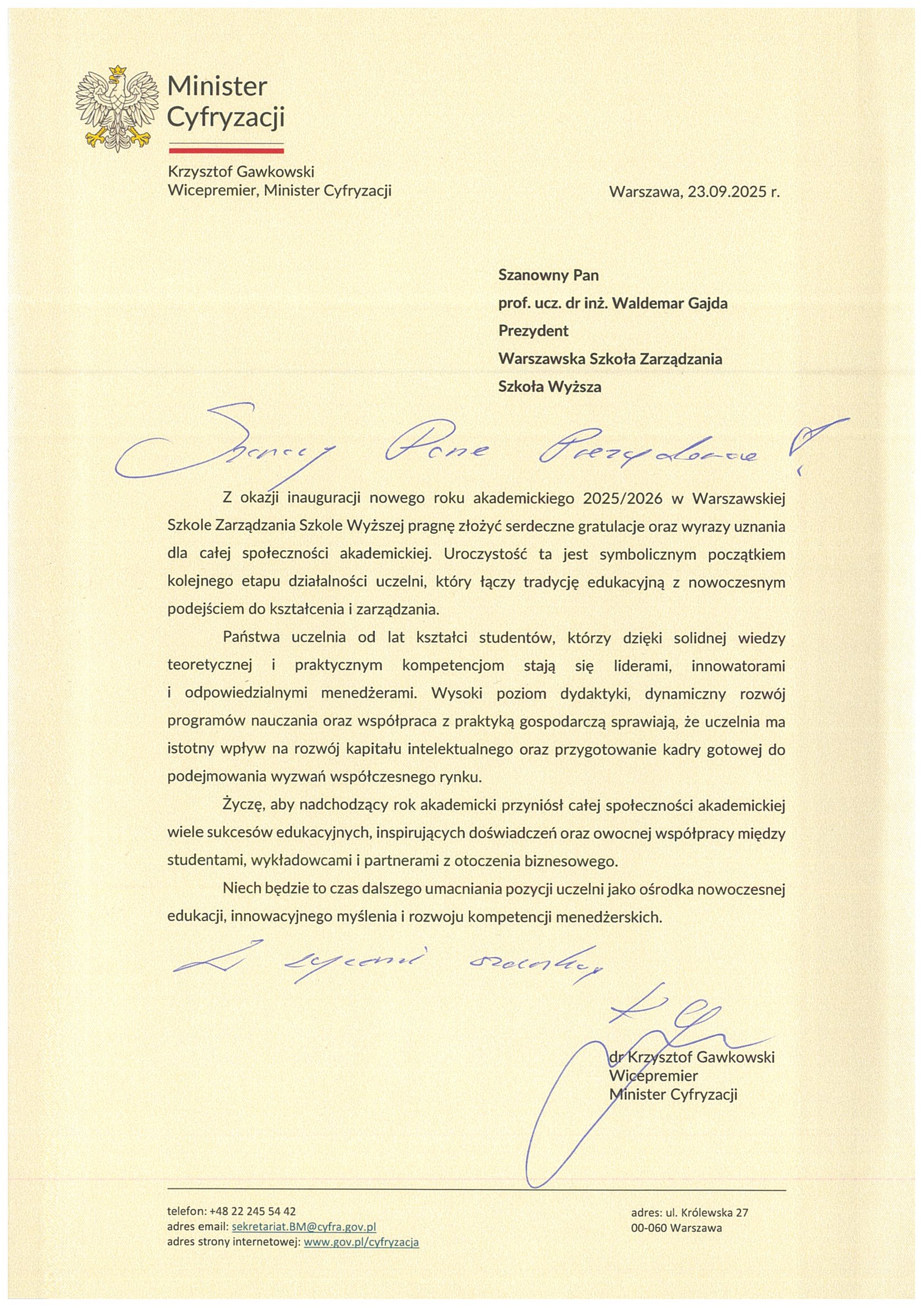 Dziekan Wydziału Zarządzania Warszawskiej Szkoły Zarządzania – Szkoły Wyższej.